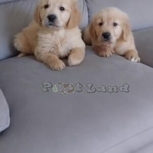 Golden retriever boy and girl